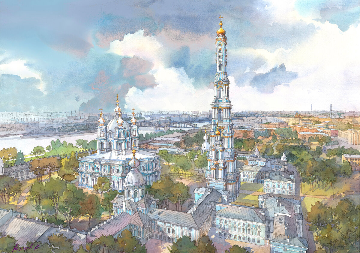 После своего четвертого года правления набожная Елизавета Петровна решила отречься от царского престола в пользу своего племянника, великого князя Петра Федоровича. Вдали от городской жизни После отречения решила она провести остаток дней своих в монастыре, построенным вдали от городской жизни, но не далеко от северной столицы. Местом для строительства монастыря был выбран левый берег Невы, где находился Смольный дворец. Именно там Елизавета желала дожить свой век и служить Богу. Разработку проекта монастыря поручили блестящему архитектору того времени Растрелли Бартоломео Франческо. Строительство монастыря шло быстрыми темпами, тысячи солдат и мастеровых возводили фундамент и стены. Финансирование строительства шло регулярно, императрица не жалела золотых. Но с момента начала семилетней войны России с Пруссией денег в казне не хватало и строительство монастыря было остановлено. Постепенно мечты Елизаветы о монашестве сошли на нет. Замороженное строительство Пятьдесят лет монасты