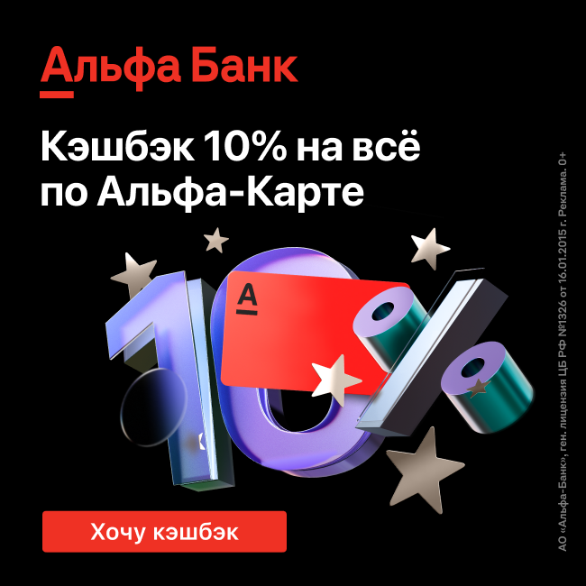 До 31.01.23 Альфа-Банк даёт лучшие условия кэшбэка на рынке для новых клиентов - 10% на все категории и до 33% кэшбэк у партнёров. Чтобы принять участие в акции необходимо оформить Бесплатную дебетовую Альфа-Карту.