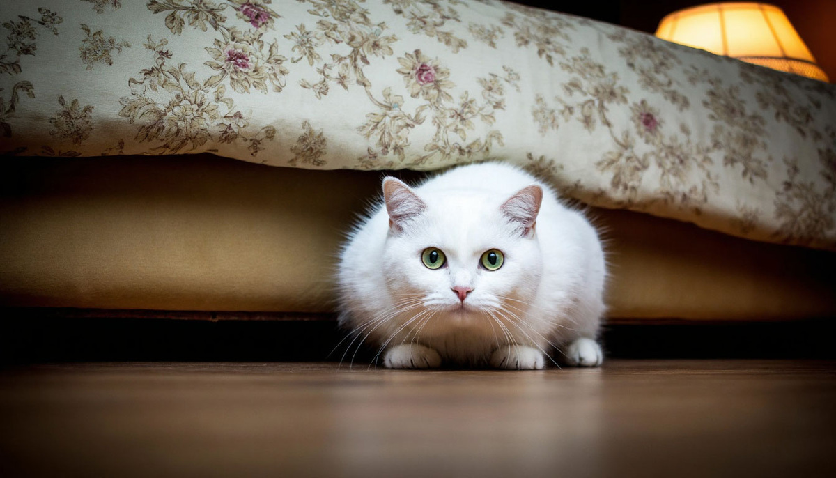 Кот не просто мяукает, он возмущен! Стоя и вглядываясь под стол, он кричит и качает хвостом, что у кошачьих считается крайней степенью недовольства.