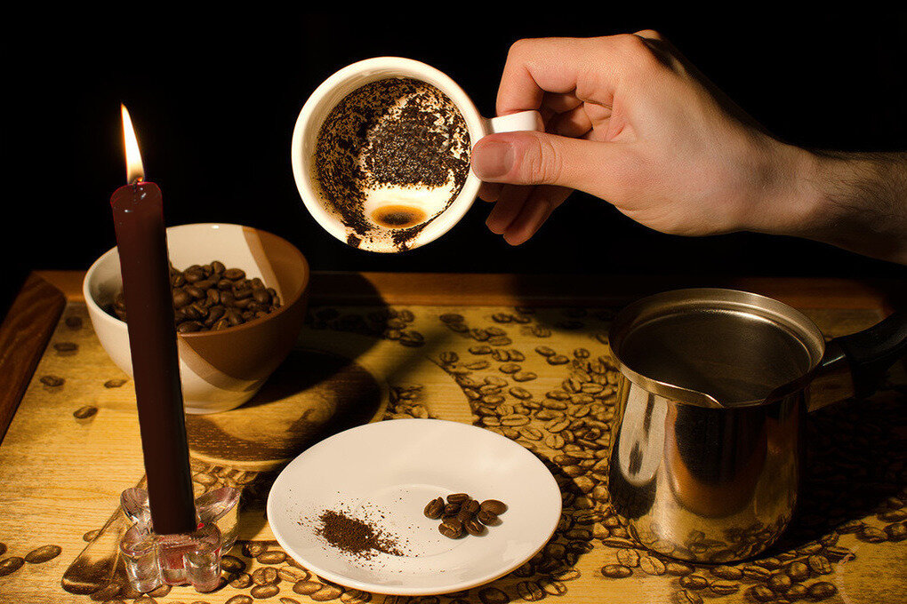 Гущу для гадания используйте ту, что осталась на дне чашки, из которой вы пили кофе. Здесь важно, чтобы стенки чашки были чисто белыми и абсолютно гладкими, а не ребристыми. Допив кофе, нужно оставить на дне примерно чайную ложку жидкости, перемешанной с гущей, затем взять чашку в левую руку и проделать ей семь вращательных движений, взбалтывая осадок. После этого чашка переворачивается вверх дном и ставится на блюдце. Когда вся жидкость стечёт, поднимите чашку и начинайте гадание.