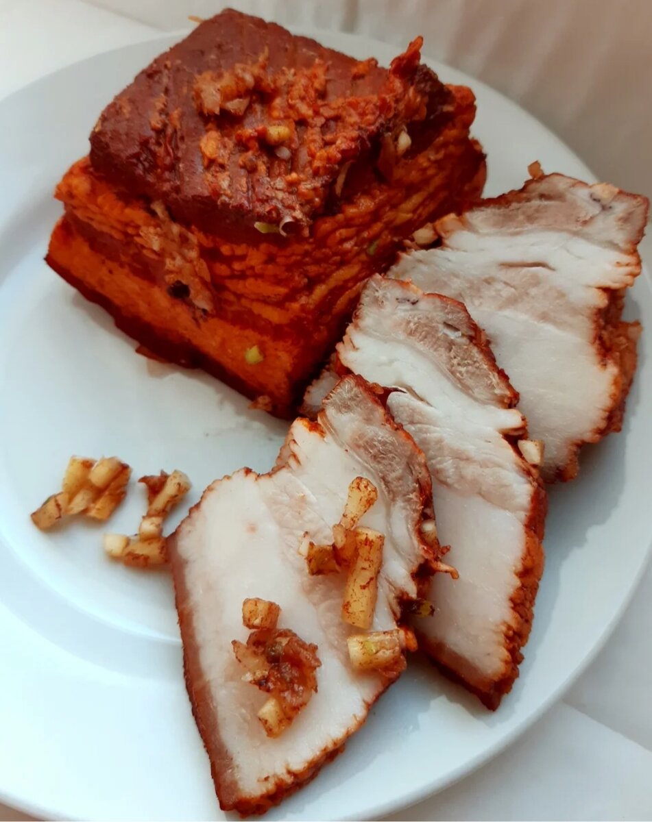 После того, как рассол полностью остыл, сало достаём и выкладываем на блюдо.