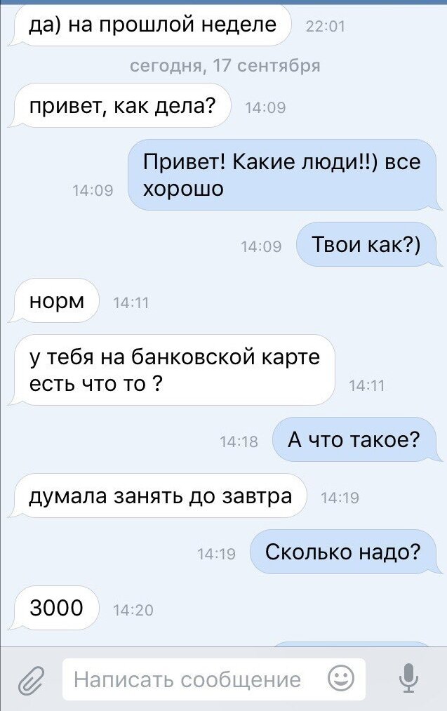 "У тебя на банковской карте есть что-то" или как меня на 4000р разводили.