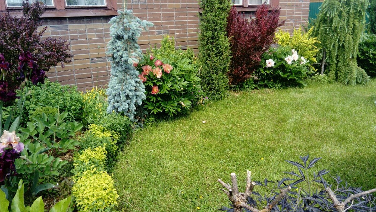 Если дословно, то БОРДЮРЫ должны отделять проезжую часть от тротуара! Но садоводы, они такие садоводы, что им тоже нужны БОРДЮРЫ, чтоб отделить места прохода людей (и роста травы) от всей остальной красоты! Предлагаю посмотреть мои решения. И ошибки, конечно! Начнем с того фото, где не видно ограничителей, но они есть! Лужайку от посадок пионов и кустарников отделяет самая примитивная гофра, но она вкопана глубоко и срезана чуть выше уровня земли. Вот не люблю я эту "красотищу" в саду и точка! А навела на мысль аккуратно срезать работа триммером- от посек пластик, а я продолжила! Пример того, насколько чужеродно и некрасиво выглядывает эта зеленая гофра. Убрала и тут! По краю лужайки тоже есть ограничители травы, иначе она активно залезет в розы. Тут - небольшие куски плитняка, тоже полностью скрыты травой, ниже будет видно образцы. Маленький мостик, под ним спрятан люк и край прикрыт кусочками плитняка. Именно такие куски я и закапываю в землю, чтоб не пускать траву, куда ей не п