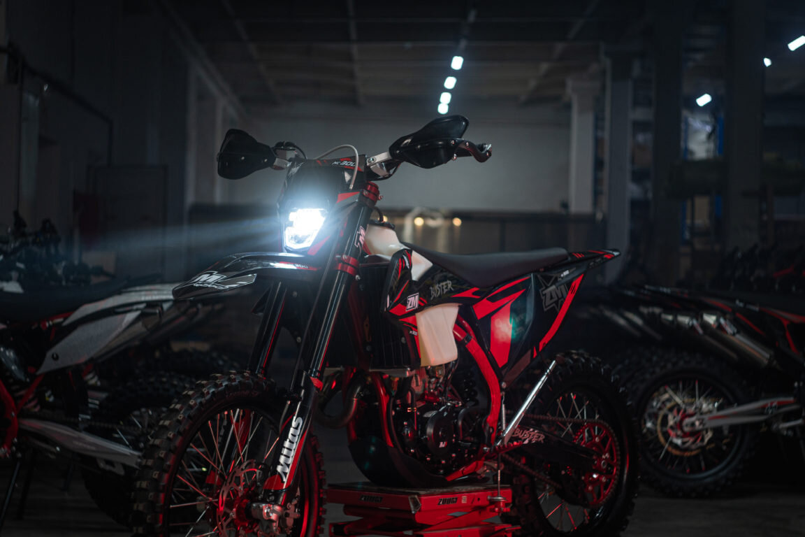 Все мотоциклы ZUUM, собираются в России на заводе в Подольске. И самое главное, собирают их высококвалифицированные специалисты, которые действительно разбираются в мотоциклах и в технике.Уже с завода на мотоциклах ZUUM отрегулированы карбюраторы, выставлены тепловые зазоры клапанов, приклеены грипсы руля, грамотно проложена проводка. И даже смазана цепь и пропитан воздушный фильтр. В 2023 компания ZUUM порадовала нас новеньким ZUUM ZM 300NC BUSTER или же просто ZM Buster. Давайте пробежимся по характеристикам. Движок: На мотоцикле установлен очень надежный и проверенный годами двигатель жидкостного охлаждения 177MM от компании Zongshen, с поршневой 84мм, объемом 299см3.Выходная мощность движка 31 лошадка. Движок работает в паре с одним из самых стабильных карбюраторов Nibbi PWK34 Racing. Подвеска: Новая полностью регулируемая подвеска с закрытым картриджем в вилке. Диаметр пера 48мм, ход 300мм.Настраивается под райдера любого веса. Тормоза: Новые высокоэффективные тормоза AJ1. Торм