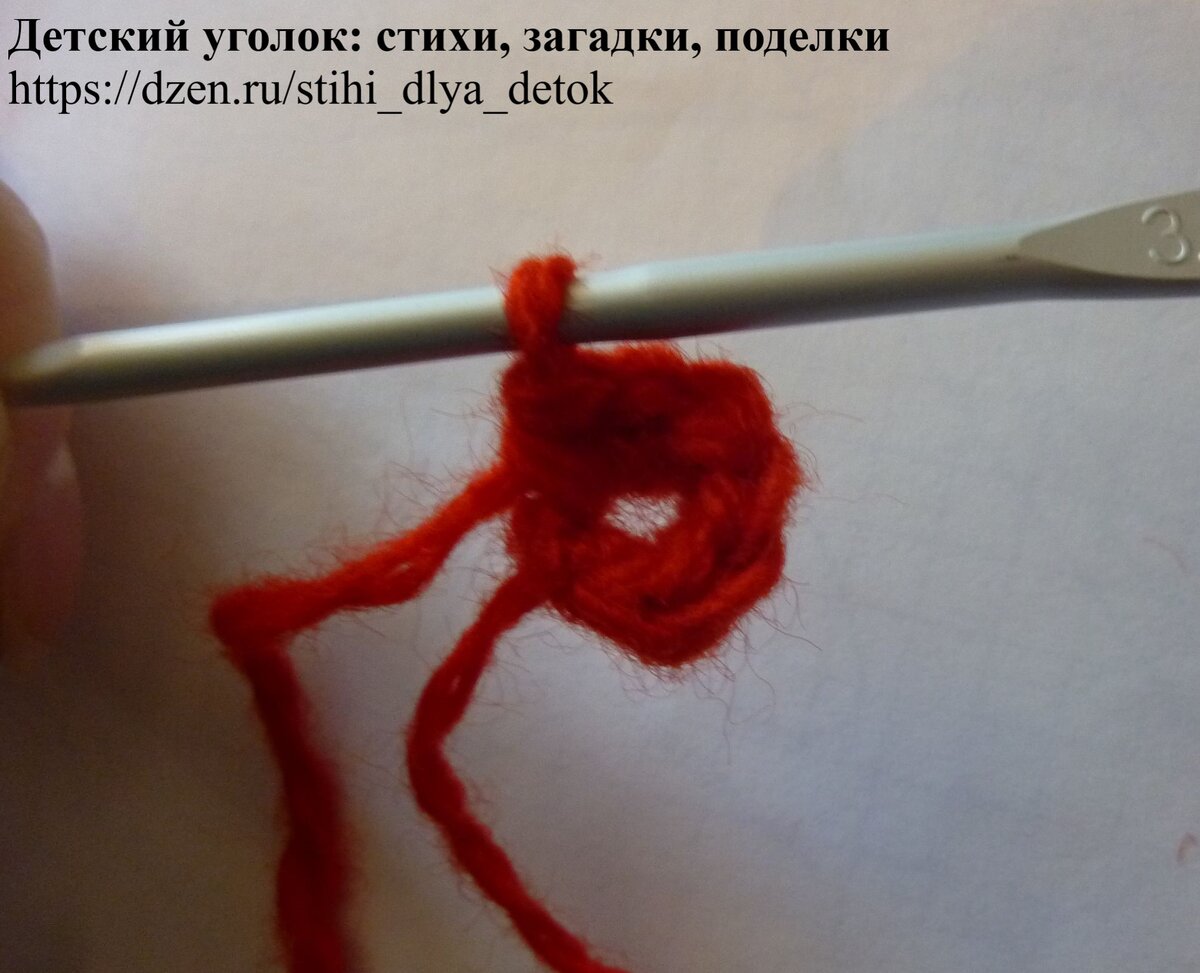 Но мы вяжем с детьми, и мне хочется фиксировать пошагово наш процесс вязания. Как что-то вроде вязального фотодневника, что ли, с фиксацией наших небольших достижений. Может, кому-нибудь ещё пригодятся наши подробные фото вязания клубники крючком и пояснения к ним.