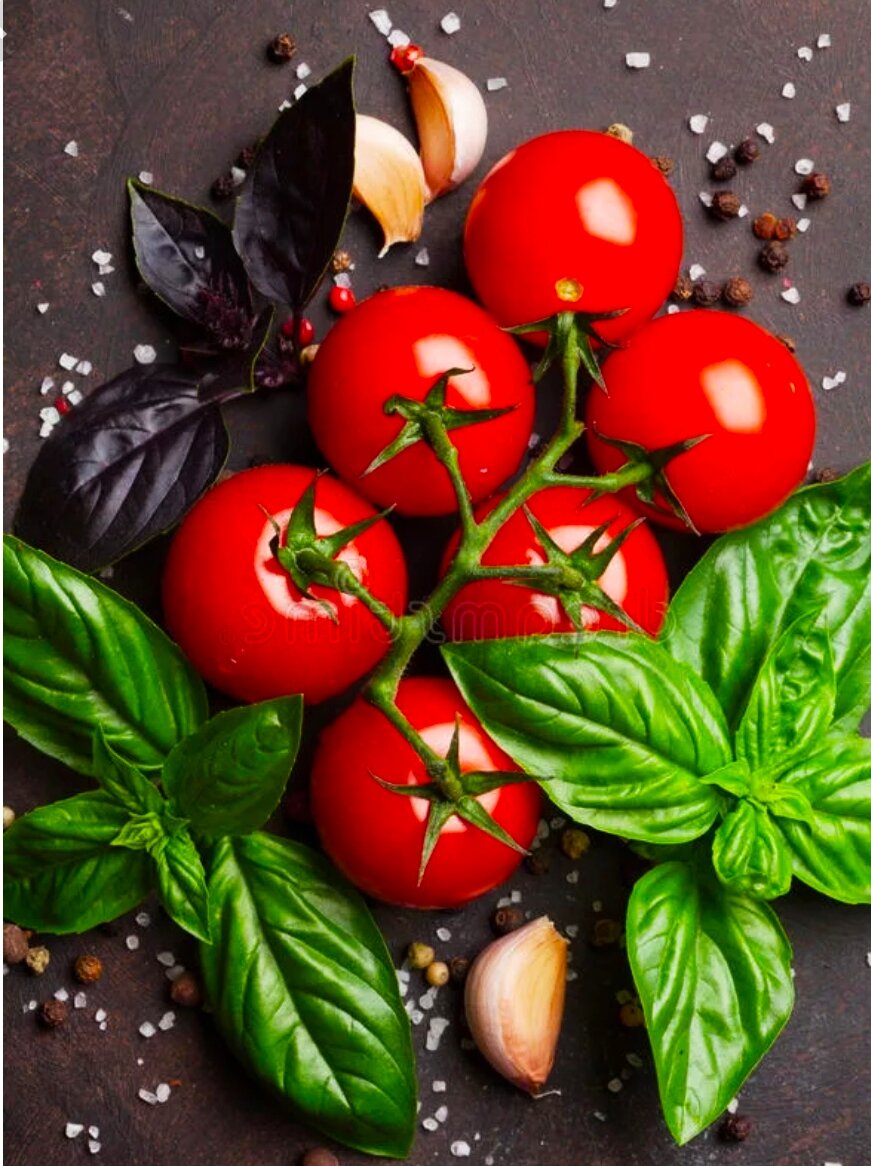 Я уже не раз писала о своем особом пристрастии к помидорам, а базилик это ещё одна зависимость, потому как они прекрасно дополняют друг друга в блюдах. Выращиваю разные сорта базилика. Сегодня хочу поделиться наиболее понравившимися разновидностями этого ароматного растения. Все, конечно знают фиолетовый базилик Ереванский. Но, в последнее время, у меня он почему то или плохо растет, или его кто-то грызет, то есть никак не получается вырастить в достаточном количестве для заготовок. Урожай зелёного базилика Тонус очень хорошо себя зарекомендовал с первого года. Сажаю его постоянно. Отличный насыщенный вкус. Базилик Бутербродный лист - для любителей пряностей с горчинкой. Достоинство этого вида - листья, очень крупные, с ладонь, слегка гофрированные. У базилика Лимонный аромат - зелёная листва, немного мельче обычной, своеобразный вкус. Этот сорт мне больше понравился в томатном соусе, чем в свежем виде. Весь базилик я выращиваю в теплице, рядом помидорами. Они очень хорошо сос