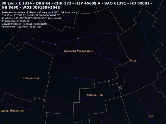 Сегодня вечером 12 января костромичи-астрономы могут (по крайней мере — теоретически) наблюдать крайне редкое явление затмение звезды в результате покрытия ее астероидом. Речь идет о звезде 38 Рыси, которую в период с 23:13 до 23:19 закроет 20-тикилометровый астероид 994 «Оттхильда». При этом само затмение продлится всего около двух секунд и будет доступно наблюдению в Свердловской, Пермской, Кировской, Костромской, Вологодской, Ярославской, Тверской, Новгородской и Псковской областях. Впрочем, для нас это возможность чисто теоретическая — звезда 38 Рыси (она находится чуть ниже лап Большой Медведицы и имеет блеск +3,8 зв. вел.) хоть и доступна наблюдению невооруженным глазом, но увидеть ее можно только в ясную погоду и вдали от городов. Так что при нынешней пасмурной погоде увидеть «звездное затмение» костромичам скорее всего не удастся. Но вдруг…?