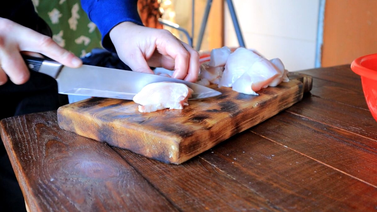 Всем привет Друзья! Рад видеть вас на канале. Мне как-то подписчик прислал рецепт шашлыка из куриной грудки, чтоб я его приготовил. У меня есть этот рецепт в формате видео, а для любителей читать, как обычно текст. Поехали к готовке! Как готовить Куриную грудку нарезаем на небольшие куски. (У меня было 1100г) Перекладываем в миску. В миску с грудкой добавляем кефир. Кефир лучше использовать жидкий, для лучшей пропитки. По рецепту добавляем 1 чайную ложку зиры, но её у меня не было, я добавил тмин. Так же добавляем 1 чайную ложку куркумы. И так же по рецепту нужно добавить 1 столовую ложку кориандра, но я посчитал, что это слишком много и добавил 1 чайную ложку, но раздавив его. Перемешиваем и убираем в холодильник на 1 час. Соль я добавил минут за 15 до готовки. А пока у меня грудка мариновалась, я не спеша подготавливал дрова для мангала))). Рецепт в формате видео Прошёл час, отправляем нашу грудку на угли. Ингредиенты: Куриная грудка. Кефир. Зира или Тмин. Куркума. Кориандр. Соль.