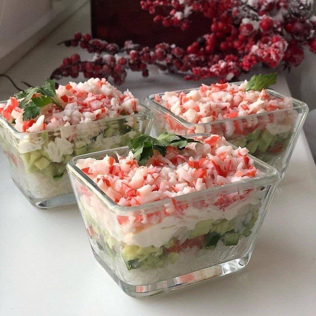 Ингредиенты 👇 ✅ рис ✅ авокадо ✅ огурец ✅ красная рыба соленая ✅ крабовые палочки 🔴Приготовление : ✔️Отвариваем рис. Все ингредиенты режем мелкими кубиками. Выкладываем слоями либо в такие формочки порционные либо в салатник: рис, огурец, рыбка, авокадо, снова рис, огурец, рыбка, авокадо и сверху крабовые палочки. 😊Между слоями добавьте немного майонеза или йогурта или творожного сыра. Всем приятного аппетита !❤️ ⠀