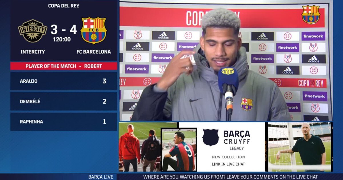 Рональд Араухо поделился мнением об игре с «Интерсити». «Барселона» в дополнительное время обыграла в гостях клуб 3-й лиги (4:3) в 1/16 финала Кубка Испании. Уругвайский защитник забил первый гол каталонцев. «Я счастлив вернуться [после травмы]. Играть на чемпионате мира – это то, чего я хотел больше всего, но не получилось. Я с нетерпением ждал игры «Барсы», хотел помочь команде. В этом и заключается магия Кубка. Мы уже знаем об этом. Когда мы выиграли его пару лет назад, в каждом матче дело доходило до дополнительного времени. В воскресенье нас ждет большая игра, финал. И мы должны сосредоточиться на этом. Но нужно извлечь уроки из того, что случилось. Нас предупреждали об их стандартных положениях. Именно так они и сравняли счет», – сказал Араухо. 8 января «Барселона» сыграет с «Атлетико» в 16-м туре Ла Лиги. Триллер «Барсы» в Кубке: 4:3 в овертайме с «Интерсити» из 3-й лиги. Получили хет-трик от воспитанника Хави о 4:3 с «Интерсити»: «Барса» усложнила жизнь сама себе. Мы были гораз
