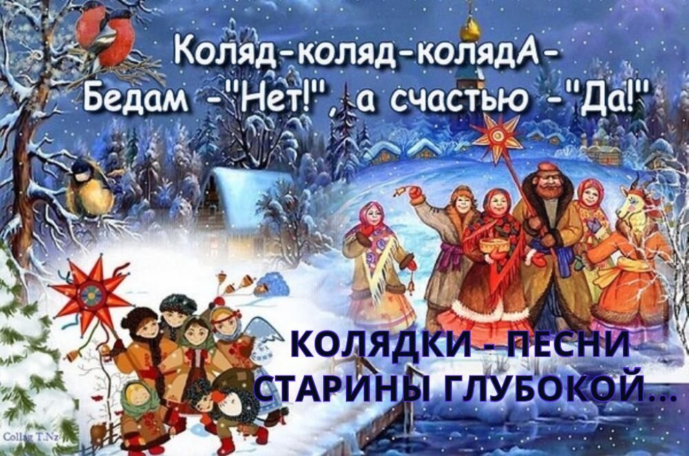 Что такое праздник? Если прислушаться к звучанию этого слова и вдуматься в него, то слышна становится древняя музыка образов- пРАзДНИк. Божественные, просветлённые дни. Пора радости, света, надежды на лучшее будущее. Таков пРАзДНИк Коляды, Бога Молодого Солнца, который, как говорят, праздновали КОЛЯДКИ 3-5 или 7-9 дней, а то и одиннадцать,до самого Водосветия- 6 января. Праздник Коляды - КОЛЯДКИ имел свою особенность. Колядовать- колядки песни исполнять, ходят дети, человек по десять, им дают на всех два-три пирога. Пироги делят на всех, когда обойдут несколько дворов. Затем ходят колядовать девицы-невесты, поют песни колядки. Им, на человек двадцать, дают несколько калачей или пряников. Потом идут жонки, потом и мужики. Им пироги-бараночки подают то же, что и девицам-красавицам. Обрядные песни колядки Песни колядки поют под окнами, а не внутри избы. Девицы просят позволение зайти на двор, входят в избу, становятся в кружок и поют «виноградьё». Я привожу поздрав