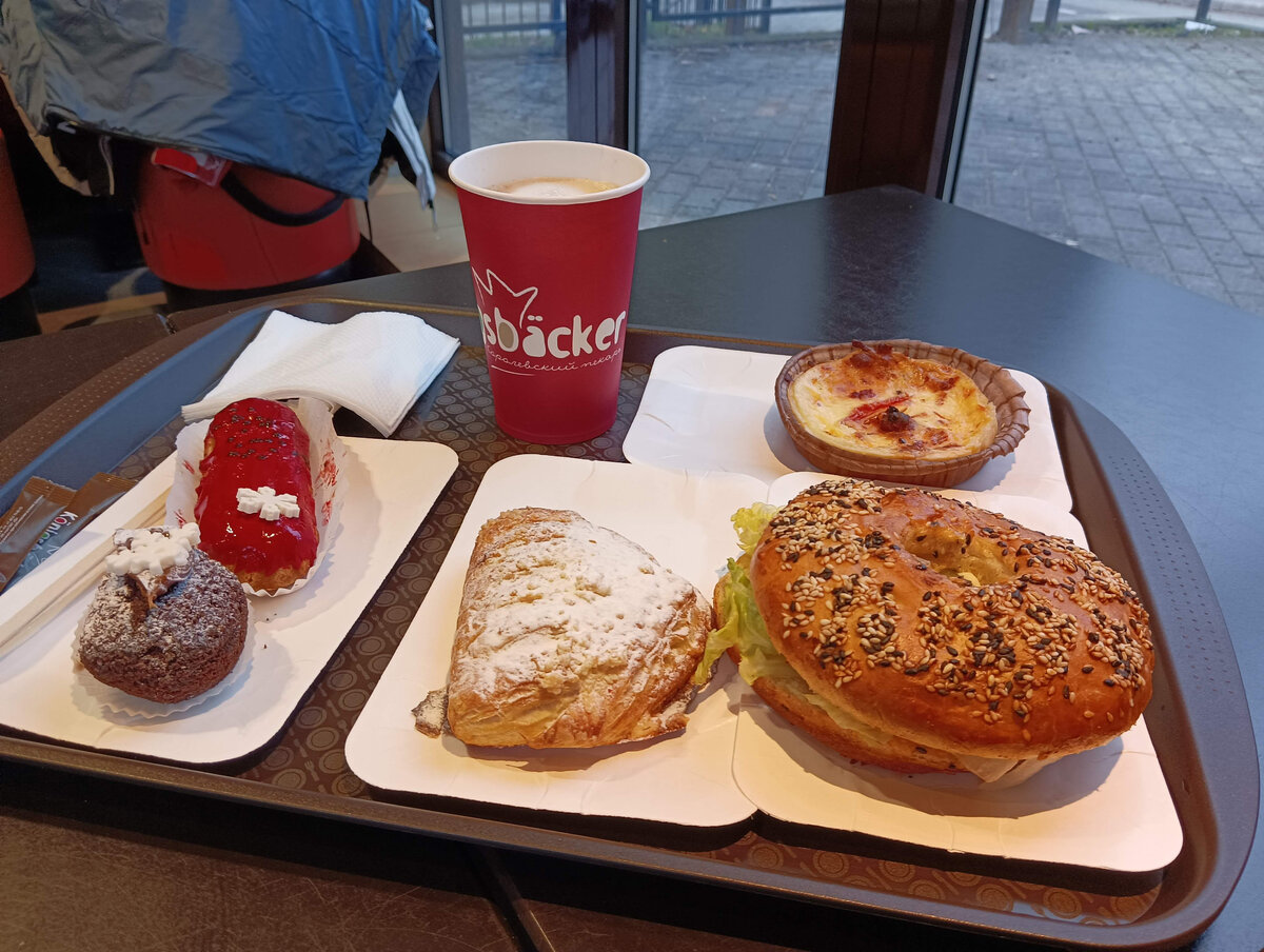 Сегодня про вкусное и аутентично калининградское :) Сеть «Kenigsbacker» представлена в столице региона и в некоторых других городах. Видимо, самых туристических, потому что в Черняховске их нет (не порядок!), а в Светлогорске есть. Пекарня и кафе в Светлогорске найти очень просто — улица Ленина, 5 минут ходьбы от вокзала. Старый немецкий дом, один из многих. А внутри Щастье! Они пекут и хлеб (на сайте рассказывается о конкуренции трех прусских городов, из которых позже сложился Кёнигсберг, в том числе и в хлебном деле) Но скажу честно, хлеб мы там не покупали ни разу :) Потому что ходим туда совсем за другим, ом-ном-ном Кстати, с ценами что-то странное, в смысле с их восприятием. У меня как-то отложилось в голове, что там Дорого, мы были тоже тут, в Светлогосрке, несколько лет назад. А сейчас вот вроде и не дорого совсем, прямо-таки нормально! Вот такие несладкие бейгли и круассаны очень большие, на завтрак им наесться без проблем, так что можно и не брать сладкое. Но мы всё р