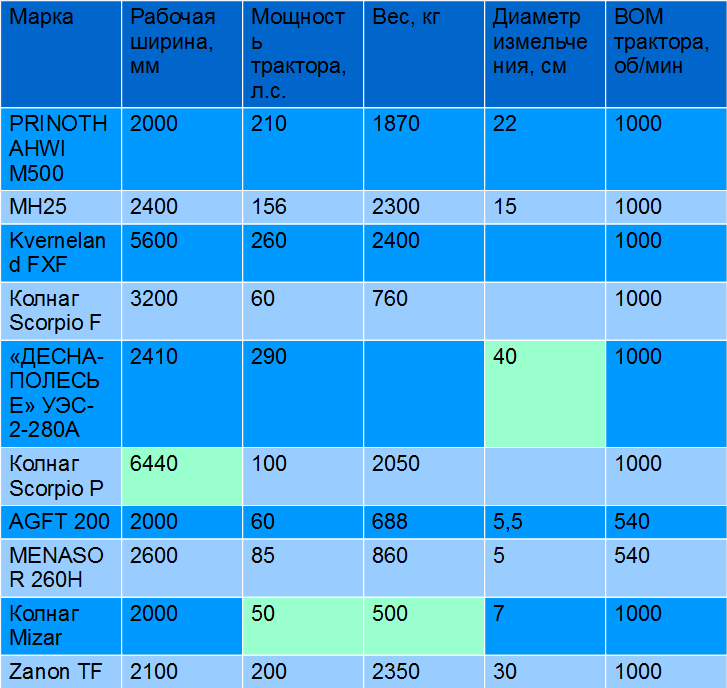 ТОП -10 моделей мульчировщиков к трактору, сравнение технических параметров