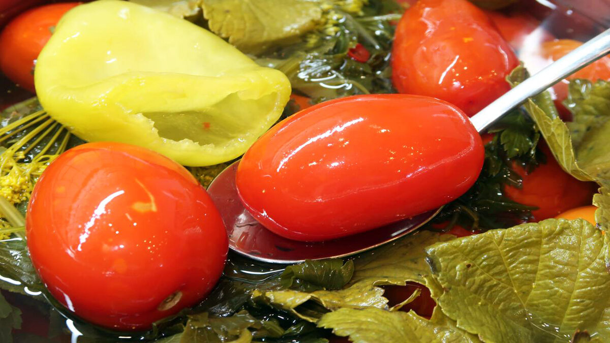 Для тех, кто любит краткие рецепты Ингредиенты: Помидоры – 1,5 кг Болгарский перец – 500 г Острый перец – 1 шт. Петрушка – большой пучок Листья смородины – 10 шт. Листья вишни – 15 шт. Зонтик укропа – 9 шт. (небольшие) Чеснок – 5 крупных зубчиков Вода – 3 литра Соль – 5 ст. л (без горки) 1. Отобранные плотные помидоры без повреждений и небольшого размера тщательно промываем. 2. Болгарский перец промываем. При помощи ножа вырезаем вокруг плодоножки окружность. Через это отверстие убираем все семена и промываем. 3. Промываем зонтики укропа, листья вишни и чёрной смородины. 4. Промытый острый перец нарезаем небольшими колечками. 5. Промываем зубчики чеснока. Если чеснок крупный нарезаем его на несколько частей. 6. На дно кастрюли выкладываем немного всей зелени, чеснока и острого перца. 7. Далее выкладываем слой томатов. Сверху на помидоры выкладываем слой зелени. На слой зелени выкладываем болгарский перец вместе с помидорами. Сверху выкладываем всю оставшуюся зелень и чеснок. 8. На три