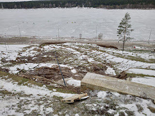 Это уже 3 оползень и он оборвался у ростверка буронабивных свай и рядом со старой отремонтированной лестницы. Все дорожки с бетоном поребриками уплыли с грунтом. Ухлопали на разработку проекта укрепления оползня 7млн.руб. это значит около 1млрд.руб на строительство. Мои чертежи и встречи Денисов не отреагировал.В газете "Знамя" он информирует, что взял под контроль и что откос не был укреплен. У него видно короткая память, где в нашем разговоре он показал мне московский проект, где учтены укрепление откосов 130 буронабивными сваями и заложены водоотводящие трубы с колодцами. Это школа твоего учителя.