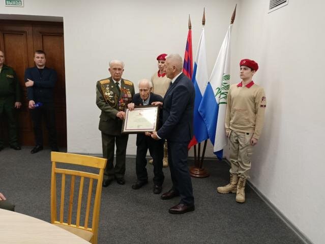 В Камышине почетной грамотой президента наградили 99-летнего участника Сталинградской битвы