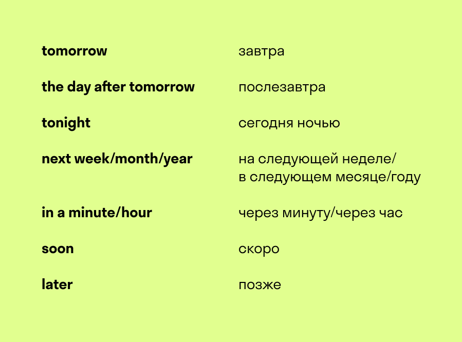 Для того чтобы подготовиться к контрольной нужно: 1. Прорешать контрольную из учебника. 2. Затем выписать и перевести непонятные слова которые присутствуют в контрольной работе. 3. Разобраться с временами английского языка. 4. Ввести в любом браузере: "Контрольная работа по английскому языку .......( класс)...................( автор и название учебника)................(если ваш учебник спотлайт указать модуль) Давайте попробуем по этому плану подготовиться к контрольной работе по английскому языку 7 класс spotlight 5 модуль! 1. Прорешали контрольную из учебника. 2. clean- чистый glass-стеклянный button-кнопка connect- подключиться send-отправлять store-сохранять 3. В пятом модуле большую часть времени уделяется Future Simple. Так давайте разберёмся что это за время и как оно образуется? Future Simple — это простое будущее время в английском языке, его еще называют Indefinite Future Tense. По-русски произносится просто — фьюче симпл. Образуется с помощью вспомогательно глагола wi