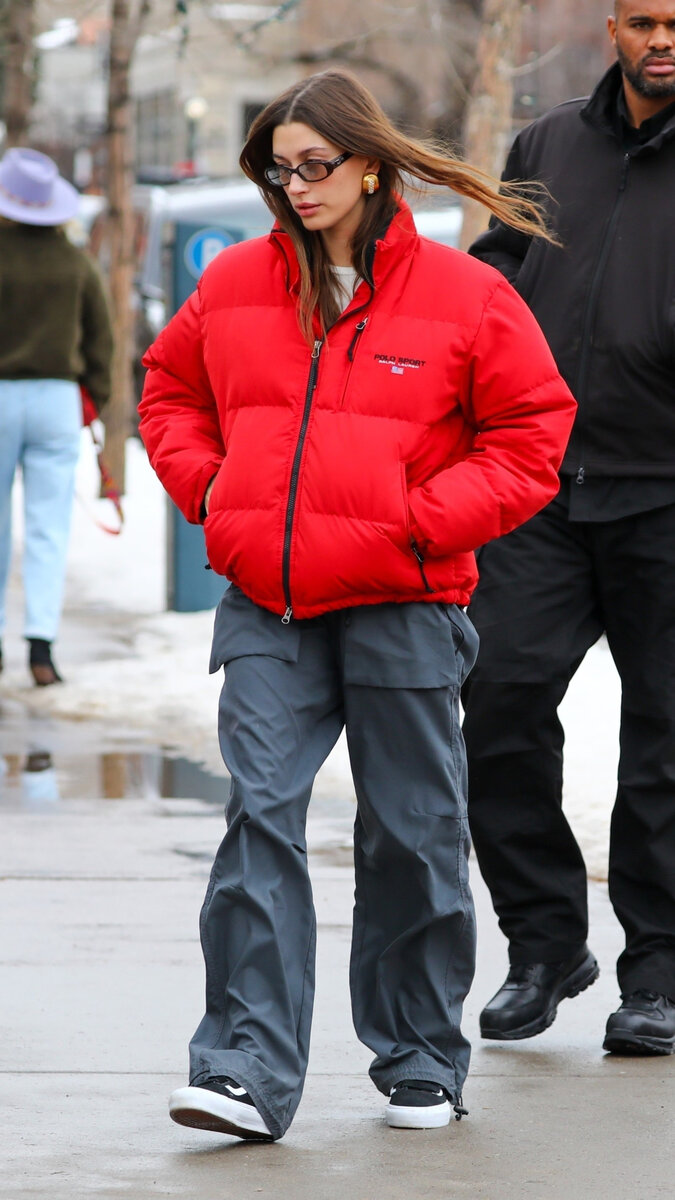 Знаменитость продолжает вдохновлять нас своими образами. На этот раз Хейли отдала предпочтение любимому спортивному стилю и надела широкие серые штаны из водонепроницаемой ткани с накладными карманами, белый пуловер и объемную ярко-красную куртку. Завершила модель аутфит классическими кедами на платформе, массивными золотыми серьгами и очками. Читайте также на нашем сайте: Подписывайтесь на нас в Телеграме, чтобы быть в курсе последних новостей!