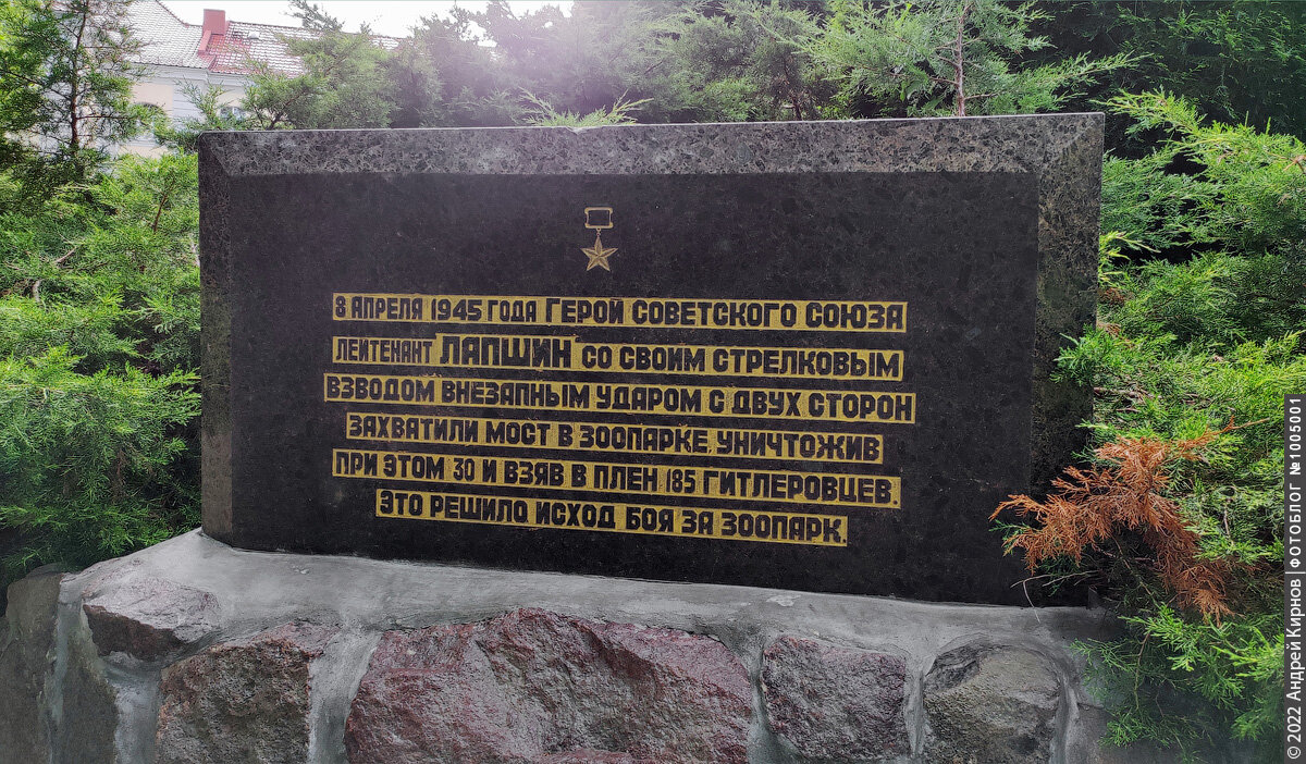 Прошлым летом я добрался до Калининграда. Очень давно хотел увидеть этот город, который до 1946 года носил название Кёнигсберг. Многие знакомые советовали обязательно посетить Калининградский зоопарк, и в один из дней я туда отправился. Если оставить за скобками зверей, которых я там увидел, на аллеях зоопарка моё внимание привлекли две вещи. Во-первых, вот такой памятник, который посвящён Герою Советского союза лейтенанту Лапшину и его взводу, который вёл героическое сражение с гитлеровцами прямо на территории зоопарка. Во-вторых, мне встретился информационный щит, где рассказывалось о том, что происходило с зоопарком во время Великой Отечественной войны и во время боёв за город. Эта история так поразила меня, что сегодня я хочу поделиться ей с вами. Вообще, Кёнигсбергский зоопарк ведёт свою летопись с 1896 года, но в рамках данной статьи так глубоко в его историю мы погружаться не будем. Сейчас нас интересует только период Второй Мировой войны. Итак, в 1938 году директором зоопарка