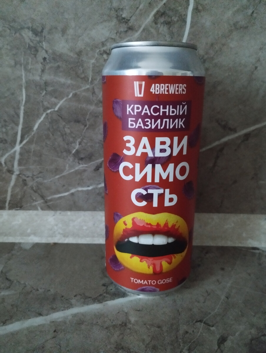 Это второй из выпитых мною новых томатных гозе от микропивоварни 4Brewers из Владимира. А может и не новых, я давно крафт не брал. Цена 270р за 0.5л. Вот что обещают пивовары: Насыщенный светлый кислый эль. Сочный томатный вкус, чуть соли и яркий аромат свежего базилика. 🍺 Пенная шапка довольно слабая оказалась. Впрочем, это для гозе неважно 🌈 Цвет протёртых красных помидор, мутный 👃 Пахнет сладковатыми спелыми помидорами и базиликом. Чуть перцем отдаёт 🍻 Консистенция в меру густая, за что я особо уважаю 4Brewers. Прямо как надо: не жидко, но и ложка не стоит. Во вкусе полно томата и того самого базилика. А вот остринка перца слабая в отличие от варианта с болгарским перцем. Пьётся легко и очень спокойно. Соль в норме. Послевкусие долгое с базиликом на фоне помидор и уходящей перчинки. У 4Brewers есть простая Зависимость и острая. Похоже, что вариант с красным базиликом сварен на основе простой, а с болгарским перцем - на основе острой. Это не точно, просто моё предположение.