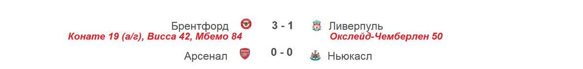 Завершился 19 тур в Англии. Ливерпуль и Арсенал оступились. Начинаем с результатов. Ливерпуль проиграл Брентфорду (1:3), который взял реванш за поражение годичной давности со счетом 0:3. Конате на 19-й минуте забил в собственные ворота. По ходу матча два мяча отменила система ВАР. Брентфорд в итоге не проигрывает 4-ю игру подряд. 3 января состоялось 4 игры. Ньюкасл, не проигравший 15 матчей, выдержал экзамен с Арсеналом (0:0). Арсенал второй матч кряду не может одолеть этого соперника. Отмечу, что последний раз «канониры» теряли очки в премьер-лиге 23 октября в игре с Саутгемптоном, которая закончили вничью 1:1. Эвертон на своем поле уступил Брайтону 1:4. На счету 18-летнего ирландского нападающего Эвана Фергюссона гол, результативная передача и жёлтая карточка. Тренер «ирисок» Лэмпард на грани отставки. Лестер – Фулхэм 0:1. Единственный гол на 17-й минуте с передачи Виллиана заколотил Митрович. Александр забил 11 гол в АПЛ, а его клуб одержал 8-ю победу и вышел на 7-е место. МЮ разгр