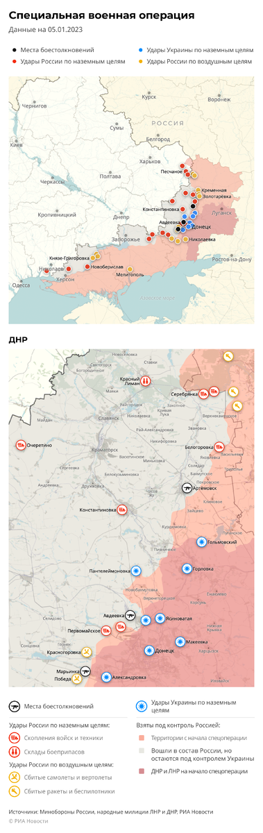 Карта спецоперации Вооруженных сил России на Украине на 05.01.2023