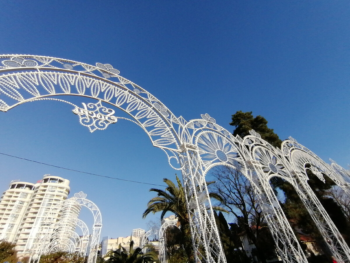 Новый год на юге и что из этого получилось. Для абсолютного большинства людей Сочи - это лето, до отказа набитый людьми город, очереди в столовку, заоблачные цены на всё, и "шашлычок под коньячок" - символ разгульного отпуска по-русски. Но есть и другой Сочи. Вернее, другая. Нам Сочи показалась в виде большой трехцветной кошки "на сносях". Она встретила нас ранним утром, когда над морем начала алеть узкая полоска зари, а где-то в густых кронах магнолий защебетали неведомые птицы. Кошка вышла нам навстречу на дорожку маленького садика, посреди которого был круглый прудик, камыши, лианы и ещё какая-то южная флора. Потом она непременно встречалась нам каждый раз, когда мы шли через этот садик. Надо сказать, что котов и собак в Сочи немерено. Один полосатый котище, наевший щеки шире головы, важно сидел на парапете у отеля и позировал гостям. Говорят, первый вдох и первый звук в другом городе - самые важные. Нет, не запахи или звуки вокзала. Дышать, слушать и смотреть "по-настоящему" ну