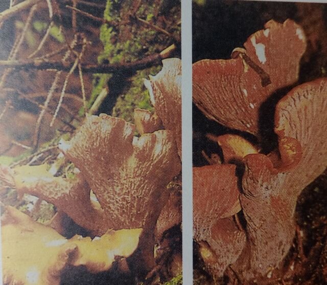 Среди множества лисичек растущих по всему Земному шару встречаются не только желтого цвета. Есть лисичка и фиолетовая. Назвают её еще гомфусом фиолетовым или гомфусом булавоногим. В грибных справочниках фиолетовую лисичку не часто, но найти можно. Так попалась она в справочнике немецком. Немцы её называют лисичкой булавовидной. В Подмосковных лесах такие красивые лисички расти не хотят. И этому есть простое обьяснение. Дело в том,что эти грибы предпочитают расти в горах. А какие в Подмосковном ОГО горы? Только рукотворные, навроде той, что в Часцах. Но и там собираются не грибной заповедник делать, а горнолыжный курорт... А вот там где горы есть, эту лисичку грибники собирают. Наверное и в нашей стране может в Крыму или в Краснодарском крае встречается эта лисичка. Но точно не знаю, врать не буду. Но учитывая что эта лисичка тяготеет к южным горам, то может быть там она и растет. Гриб красивый, и не только цветом. Сам размер гриба достаточно крупный. А если их целая заросль, то можно п