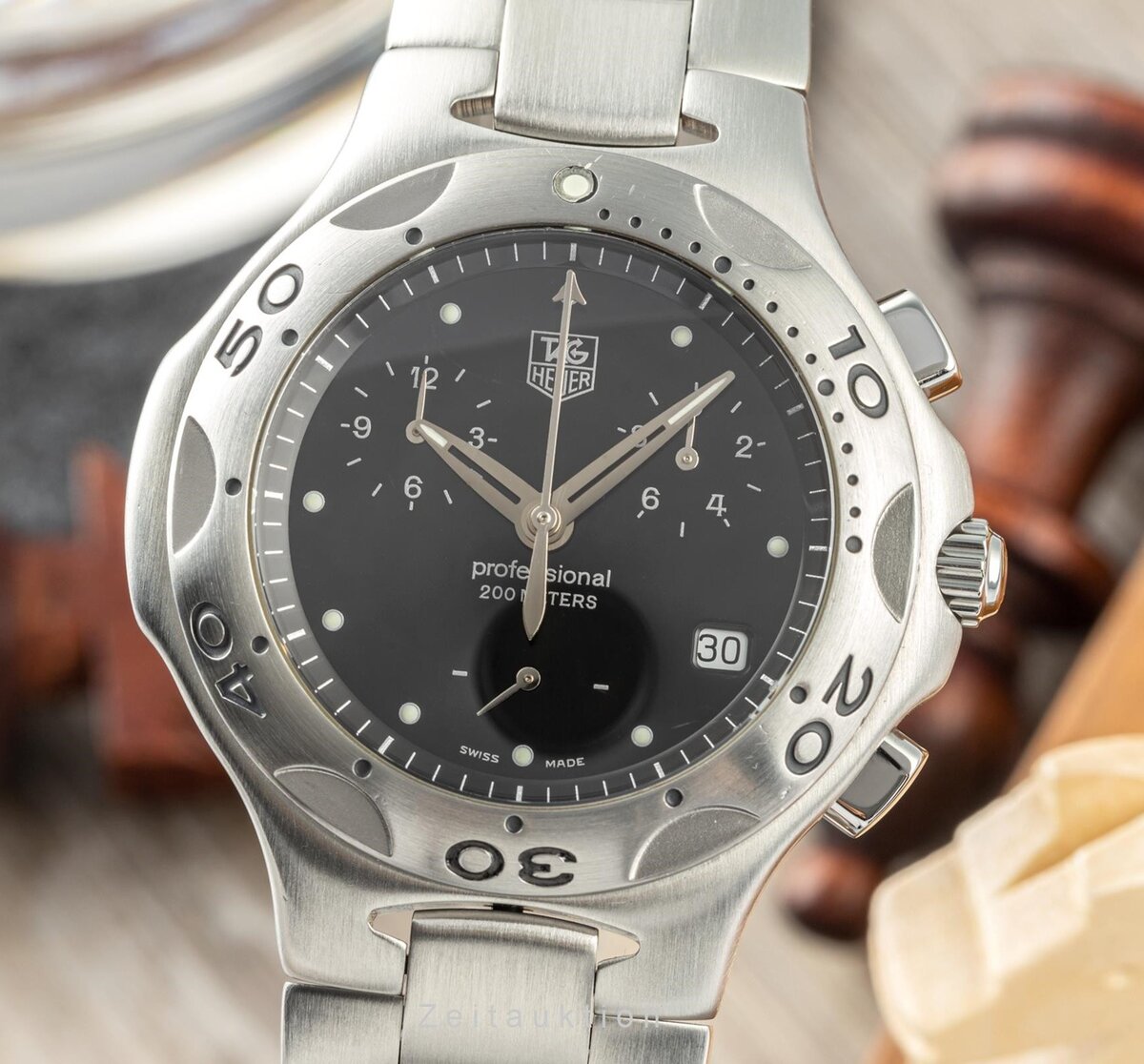 Выделить в часах также стоит и замечательную 200-метровую дайверскую водозащиту, ещё больше поднимающую практичность.Дополнялись эти TAG Heuer Professional заводским стальным браслетом - крупным и трёхзвенным, но ничем экстраординарным не выдающимся.
