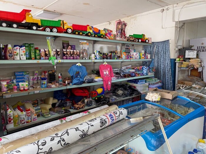 Всем привет. Проезжал, я как-то одну деревню. Довольно далеко от города и тут, краем глаза замечаю, нечто знакомое... Это был деревенский магазин, который был построен по типовому проекту. Я сам такой, довольно часто посещал в детстве, когда проводил летние каникулы у бабушки. Они и сейчас есть, но стали другими... Обшиты сайдингом, изнутри - перепланировка... Короче - мало, чем отличаются от придорожных мини маркетов. А тут мне прибило купить мороженное. Зашел во внутрь и обомлел... Как будто в детство переместился. Внутри было все так-же, как и в советское время, за исключением товаров: Магазин, изнутри выкрашен в белый цвет. Все те же разводы на потолках - ржавые такие: Висят на вешалках вещи: Выбор продуктов, естественно - поболе: Даже морозильник... Ну похож, короче: Купил еще печенюшек: И я не сильно силен в холодильниках - витринах. Но уж больно похожи на советские. Такие дела. Реально, прямо - ностальгия такая накатила. Не хватает еще бочки, с постным маслом, что стояла внутри.