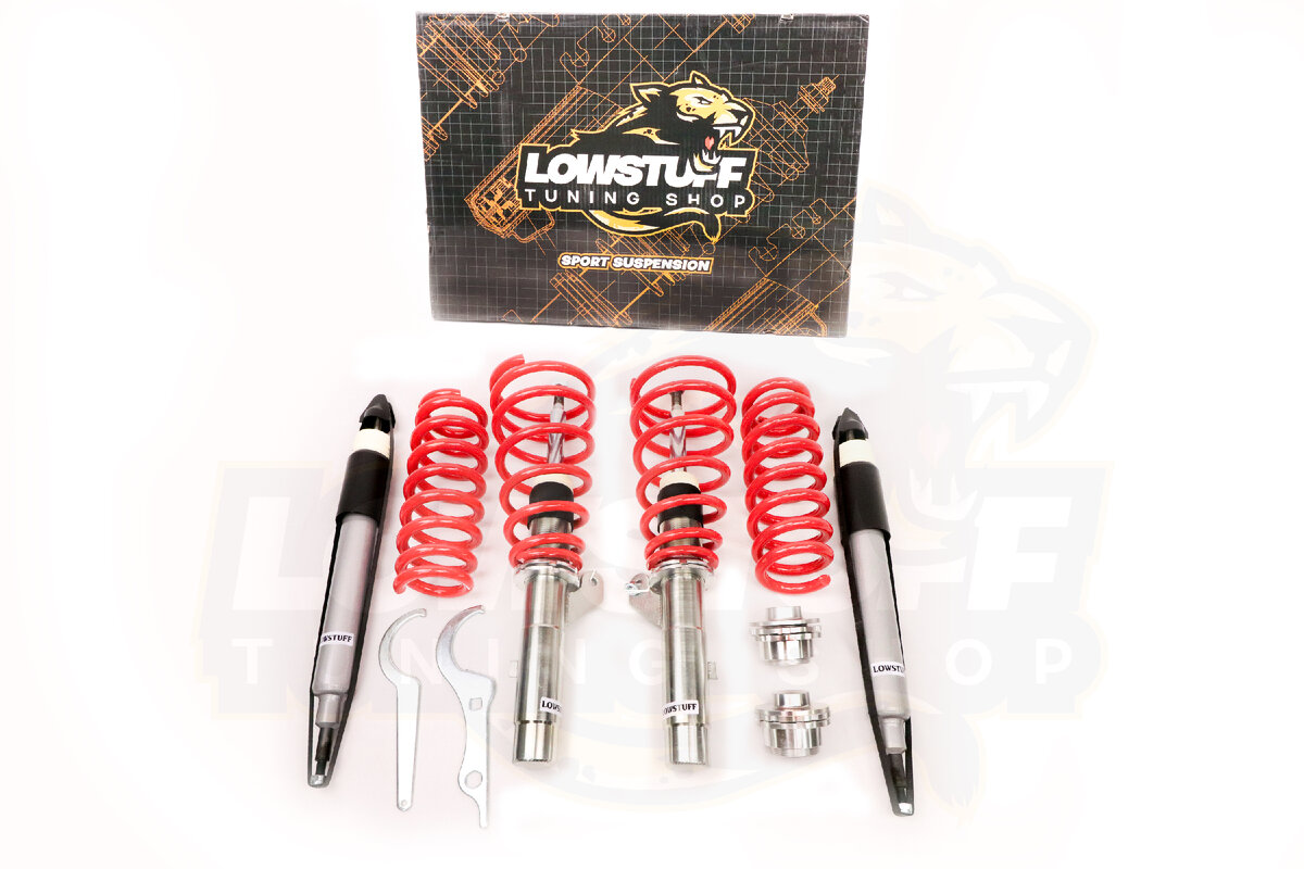 Комплект винтовой подвески с регулировкой высоты LOWSTUFF EVO-I для BMW E81 E82 E87 E88 E88 E90 E91 E92 E93 Артикул LSCSBM061 Регулировка по высоте: Осевая нагрузка: для автомобилей с задним приводом Комплект койловеров LOWSTUFF EVO-I представляет собой начальную линейку винтовых подвесок с одной регулировкой под пружиной. Аналогичны по своим характеристикам с Jom Redline, Jom Blueline, TA-TECHNIX Предназначена для установки на