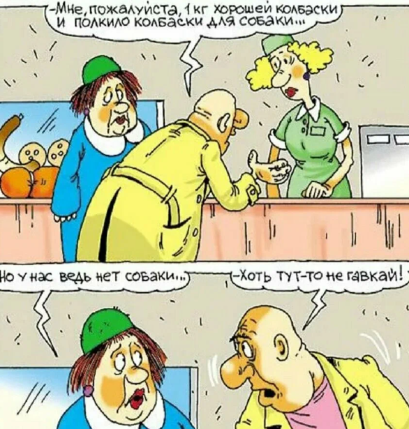 В море на крутой яхте, в белоснежном костюме на палубе стоит хозяин. Пьет виски. Курит сигару. И ловит золотой удочкой рыбу. Вокруг суетится обслуга, загорают полуголые девицы. Но рыболову не везет. Или вообще не клюет, или ловится мелочь и редко. Вдруг мимо на старой, дырявой лодочке гребет мужичек. Сам полупьяный, песни орет во все горло, полная лодка крупной хорошей рыбы. Хозяин яхты грустно посмотрел на него и говорит: - Вот так всегда! Кому-то все, а кому-то нихрена. Приехали студенты ветеринарного техникума на практику в колхоз. Руководитель практики главный ветеринар говорит: - Мне срочно нужно в соседний колхоз, а вы пока скрестите вон ту корову вот с этим быком. Понятно? - Понятно. Приезжает через пару часов, смотрит бык дохлый валяется, а корова пасется спокойно. - Вы что наделали, уроды? - Да мы пока корову на спину укладывали, пока ей ноги раздвигали, бык со смеха и помер. *** Украинская деревня вечером. У плетня стоит хлопец и орет: - Оксана! Оксана!!! Выглядывает Оксанина