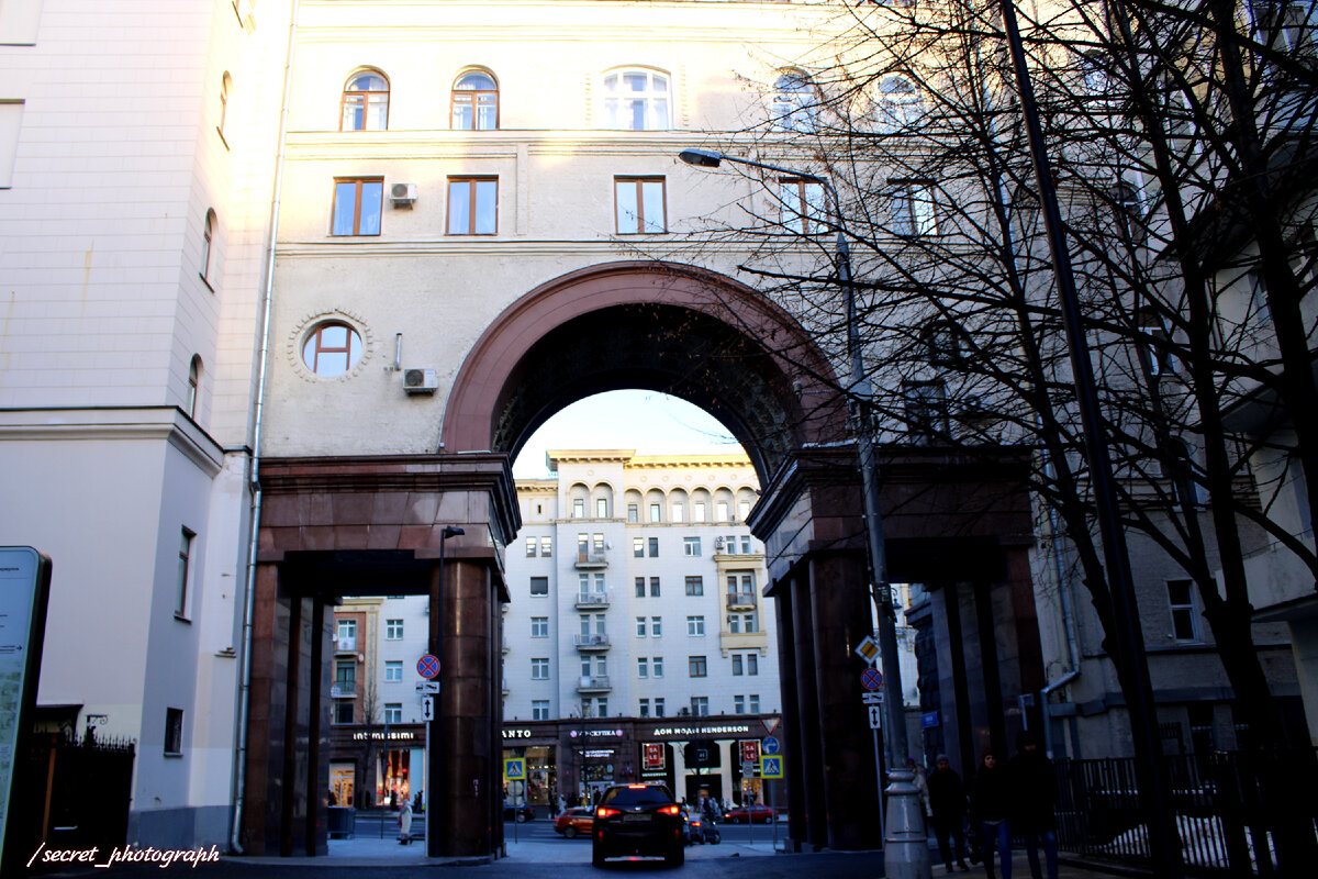 Буквально на днях я рассказывал о двух домах на Тверской улице, соединенных между собой полукруглой въездной аркой. Арка эта ведет в тихий – даже не верится, что ты в самом что ни на есть центре Столицы – Брюсов переулок.