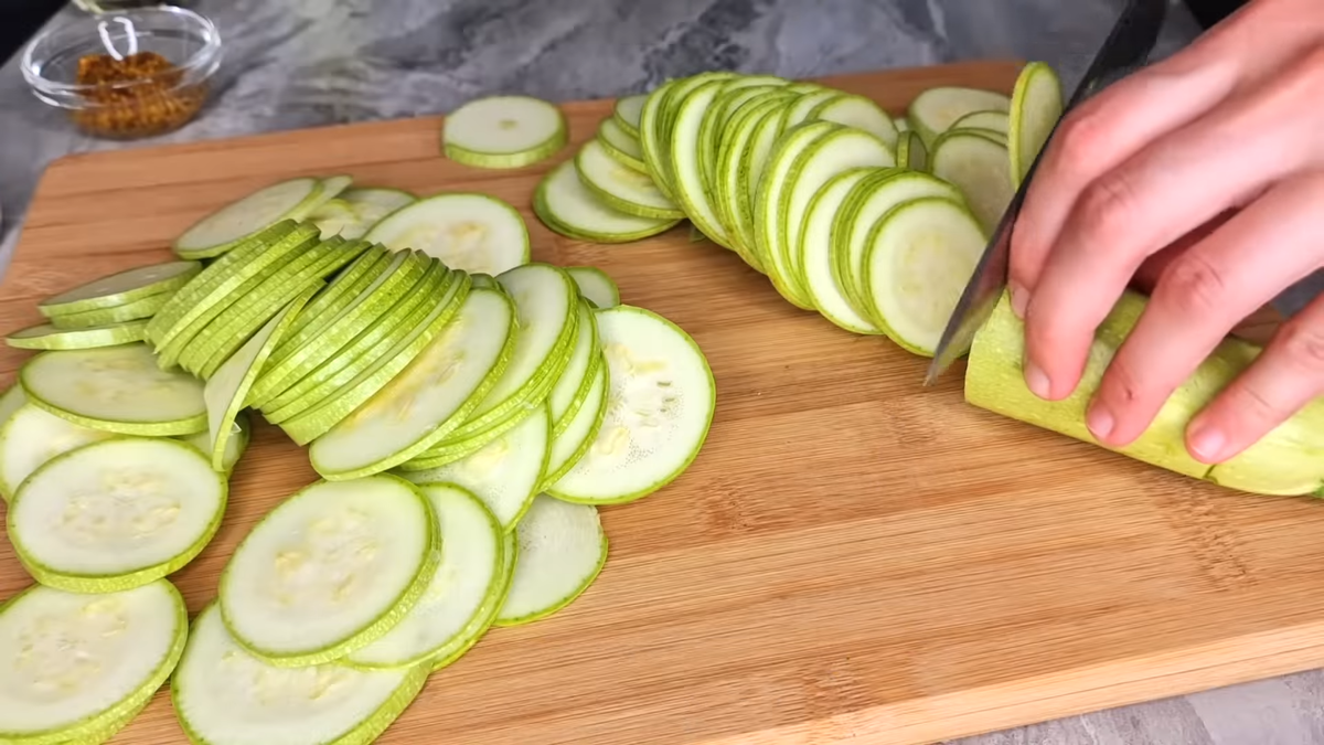 Нарезаю кабачки и мариную с горчицей и приправами на закуску в пакете (простой рецепт для праздничного стола, гостям нравится, делюсь)