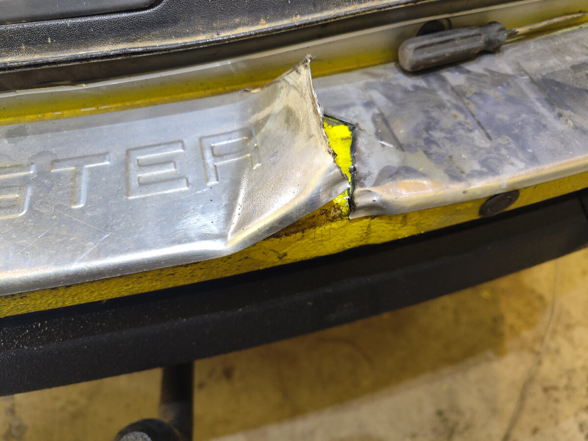 Хорошо хоть была хром накладка толстая, вроде из 1 мм металла.