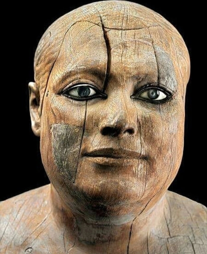 Статуя Каапера, IV династия (примерно 4600 лет тому назад). Египетский музей. Каир Дерево (сикомора), камень, медь. Каапер (или Ка-апер) был жрецом и писцом, человеком весьма образованным, но не особо высокого положения. Его имя в веках сохранила именно эта деревянная статуя. Она была найдена в конце XIX века и получила арабское название Шейх эль-Беле («Сельский староста»), поскольку имела поразительное сходство с старостой деревни, где велись раскопки. Это название сохранилось за скульптурой и его нередко можно встретить в научных публикациях. Впечатляющие глаза скульптуры Каапера выполнены из хрусталя и небольших медных пластинок. Высота деревянной статуи 112 см. Читайте также.