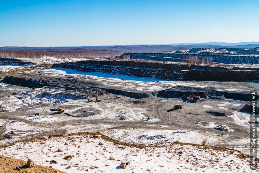 Дальше едем на другой карьер прииска Соловьевский, где посмотрим третий способ добычи - тоже карьерный, но уже рудного золота. Это золото, находящееся внутри твердых пород в виде сростков с другими минералами.