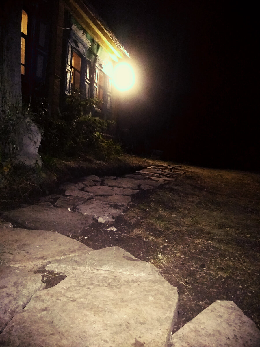 На улице немного прохладно...возле фонарей летают мотыльки ,мошки и наглые осы живущие на чердаке хижины.