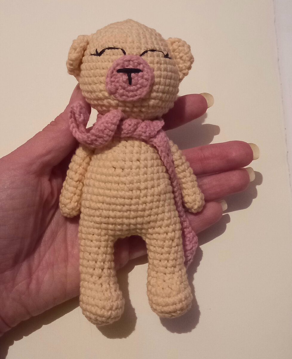 Здравствуйте мои дорогие! Нитки остались у меня еще с декрета. Тогда я практически впервые взяла в руки крючок и научилась сама вязать игрушки. Это было 3 года назад. Потом был долгий перерыв и этой осенью я снова увлеклась вязанием игрушек. Пришлось учиться практически с нуля🙂 Не помнила даже как делать кольцо Амигуруми. Кто вяжет , тот знает что это основа основ в вязании игрушек и не только. Первым связался небольшой мишка Далее было еще 2 мишки , но в других цветах. Их себе забрал сын) Далее нашла схему уточки Ла ла фан фан. Мне она показалась очень милой и появилась уточка в красном наряде... Потом еще уточка в розовом наряде Нашла схему кролика. Ведь приближался Новый 2023 год . Он получился довольно крупненьким. Захотелось связать маленькую игрушку. Чтобы недолго её вязать . Маленький зайчик получился за один день Пару дней назад подумала что пора бы усложнять игрушки. Взяла схему игрушка+одежда. На игрушку ушло 3 дня. В день я вязала по несколько часов. У этой игрушки уже 2