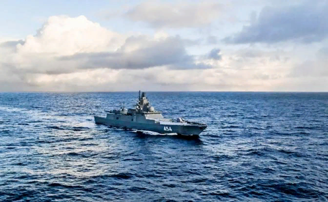 - Он обладает мощным ЗРК «Полимент/Редут», противолодочным вооружением. Этот корабль, наряду с другими, значительно усилит наши позиции в дальней морской и океанской зонах.