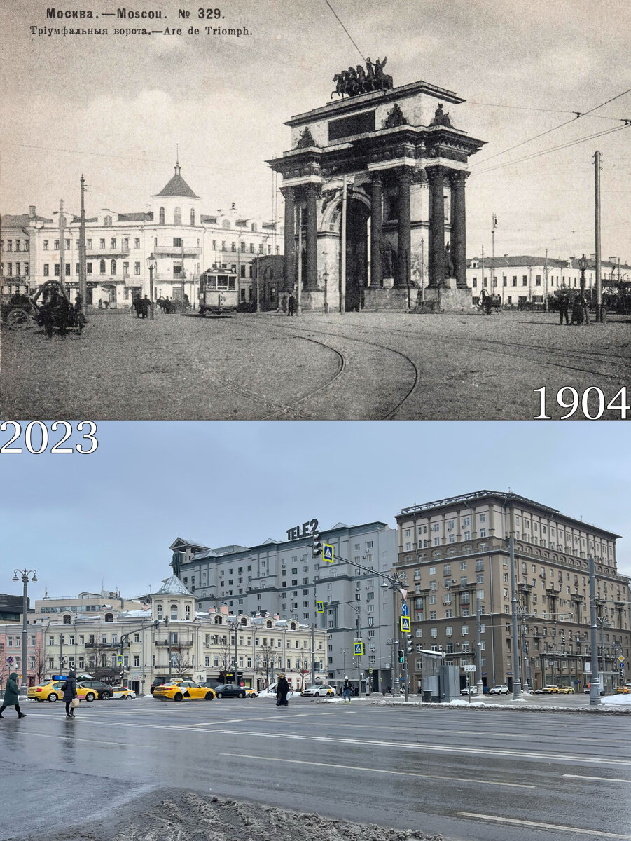 Триумфальная арка на площади Тверской заставы в Москве: было/стало