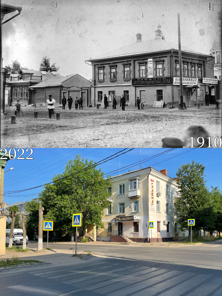 1) Пересечение Стрелецкой улицы и Спасского переулка За 3 дня в Шуе мне удалось сделать около 45 снимков было/стало. Это финальная подборка кадров из города. Подобных советских жилых домов в центре Шуи почти нет (насчитал около 5-7). В основном город состоит из таких домов, как на фото 1910 года. 2) Торговая площадь 3) Торговая площадь и Спасский собор вдали Сохранность главной торговой улицы Шуи заслуживает отдельной похвалы. В некоторых местах только вывески изменились с дореволюционных на современные! Единственная утрата ансамбля Спасская церковь, как называли её жители города – местный Исаакиевский собор. Зимой храм "воссоздают" с помощью подсветки. 4) Крестовоздвиженская улица В кадре Крестовоздвиженская улица (ныне Театральная). Слева виден главный Воскресенский собор 1798 года постройки (перестроен в 1913 году) и 106-метровая колокольня, стоящая отдельно. 5) Народный дом В 1901 году по проекту архитектора из Москвы Константина Терского в стиле неоклассицизм было возведено обще