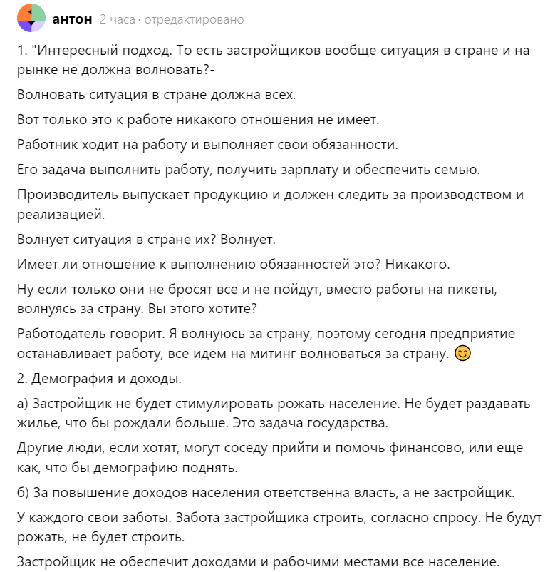 Продолжаем обсуждение с подписчиком канала Антоном насущных вопросов строительной отрасли, поднятые ранее в статье "Кому стагнация, а кому и стабилизация", а также в первой части обсуждения вот здесь: "Квартиры мы не строим для людей...".