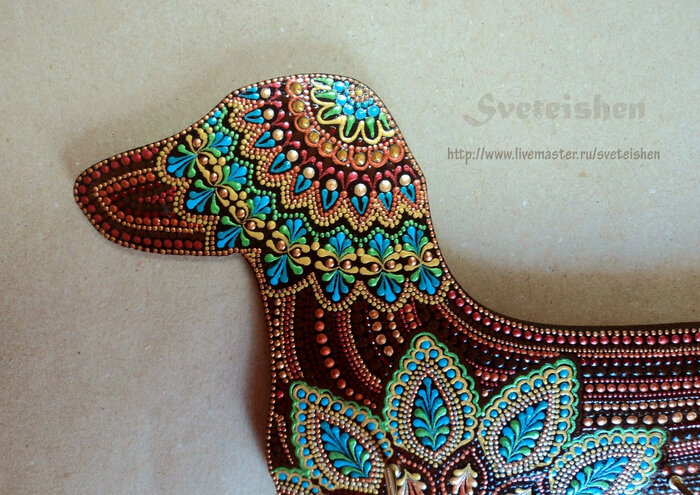 Добрый день, любители прекрасного!) сегодня у меня деревянная ключница в виде собаки, расписанная мною в декоративном точечном стиле. Люблю расписывать заготовки в виде животных. В основном, мои заказчики это любители тех или иных питомцев. Вещица позиционируется как панно с крючками, можно использовать как ключницу в прихожую, можно вешать на кухне полотенца, а кто-то использует для украшений и других легких мелочей. Мелкая кропотливая роспись выполняется акриловыми контурами и сверху покрывается лаком в 3 слоя, вещицу можно протирать влажной тряпочкой. На задней поверхности имеет крепления для подвешивания на стену. Меня можно найти вконтакте по ссылке в профиле. Читайте также.