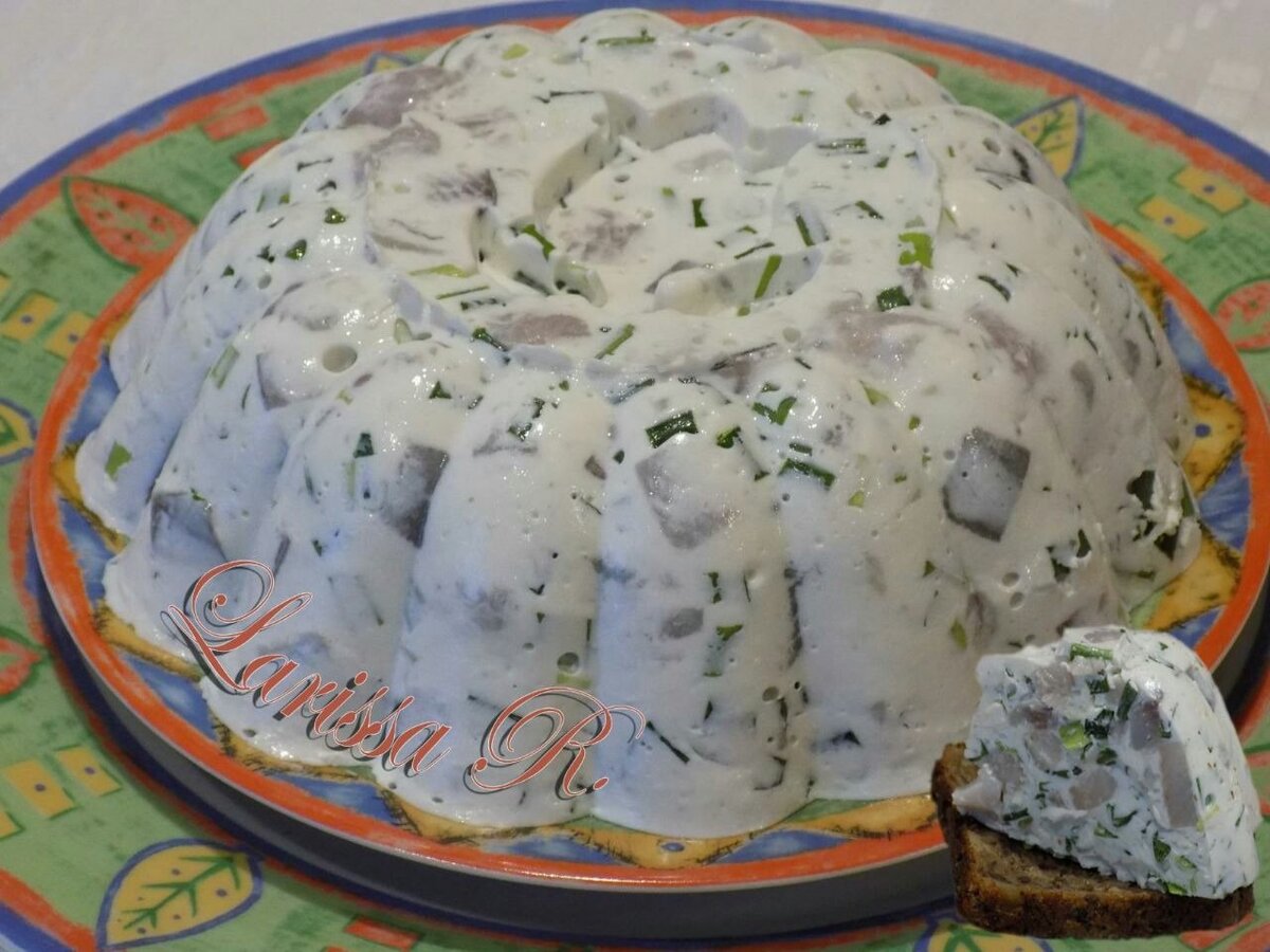 #рецепт Селёдка по-таллински - 350 гр филе селедки - 350 гр сметаны - 150 гр зеленого лука - 15 гр желатина - 1/4 ч ложки молотого мускатного ореха - 30 мл воды Желатин залить водой и оставить набухать. Разбухший желатин растворить в микроволновке не доводя до кипения, оставить остывать до комнатного состояния. Сметану выложить в миску, добавить мускатный орех и можно добавить немного соли (если селедка очень соленая, то этого делать ни в коем случае нельзя!). В сметану ввести желатин, хорошенько размешать. Добавить порезанные селедку и лук, и снова перемешать. Выложить в форму для застывания и оставить на несколько часов. Закуску можно делать и порционно, заливая в маленькие формочки для маффинов. Подавать можно на колечке отварного картофеля. Приятного аппетита!