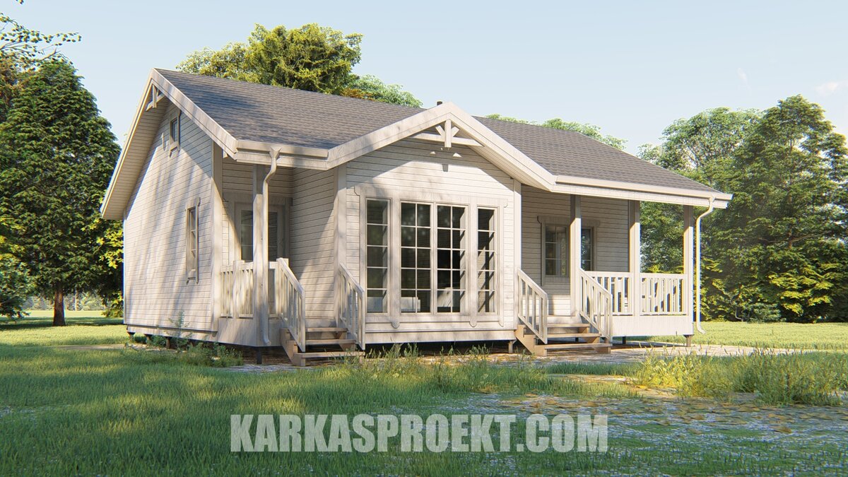 Всем привет друзья! В этой записи покажу вам проект каркасного дома размером 9х10,5 м., общей площадью 83 кв.м. Это одноэтажный каркасный дом с террасой под общей крышей. В доме располагаются- 3 спальни, прихожая, техническое помещение, санузел, большая кухня-гостиная и открытая терраса. Фундамент дома - винтовые металлические сваи диам. 108 мм. с оголовками 200х200 мм. Ростверк деревянный, выполнен из доски 50х200 собранной в балки. Цокольное перекрытие из доски 50х200 мм., с утеплением 200 мм. между балок перекрытия. Чёрный пол из ОСП-3 толщ. 18 мм. Наружные и несущие стены запроектированы из доски 50х150. Перегородки из доски 50х100. В качестве способа обеспечения жёсткости дома, предусмотрена врезка укосин в наружные и внутренние стеновые панели дома. Утепление стен между стоек каркаса составляет 150 мм. Что бы получить толщину утепления наружных стен в 200 мм, вы можете выполнить горизонтальную обрешётку из бруска 50х50 снаружи или изнутри дома с дополнительным слоем утеплител