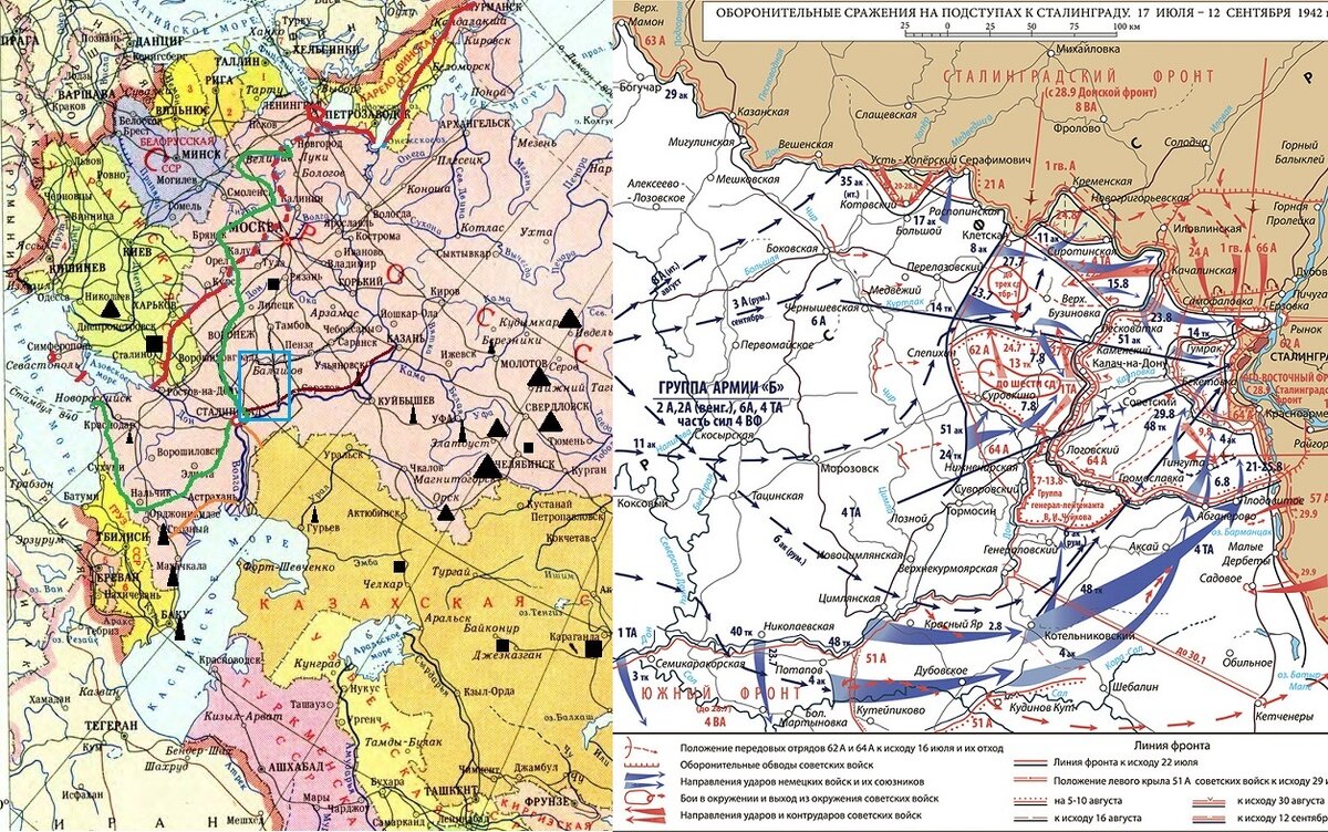Между тем, сдавать его немцам было никак нельзя. И дело тут не в названии города. Взяв его, Гитлер планировал сразу двинуть освободившиеся войска либо на север вдоль правого берега Волги, либо на юг, для усиления своей группировки, наступающей на Кавказ. И то, и другое было крайне опасным для СССР: первое позволяло отрезать от сырья и топлива Московский промышленный район, выводя немцев на коммуникации, связывающие его с Уралом и восточными частями страны, а второе - захватить места добычи большей и лучшей части советской нефти.