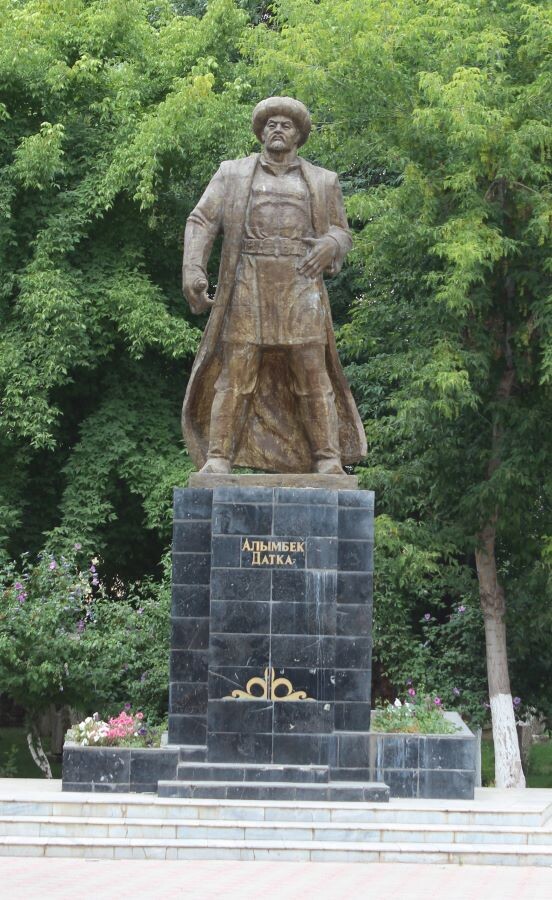 Алымбек Асан-бий уулу, Алымбек-парваначи (1799 -1862 гг.) - видный госуд-ый деятель кыргызского народа. В 27 лет поступил на службу к Кокандскому хану Мадали. По достижении 31 года удостоен звания датка. В 32 года был назначен беком Андижанского вилойята и играл значительную роль в орде Кокандского ханства. Принимал действенное участие в провозглашении Шералы ханом в 1842 г. Переместив столицу Андижанского велойята в г. Ош, внес большой вклад в его социально-экономическое развитие. Был инициатором строительства мужского медресе. Возглавил ошское восстание 1845 г. против орды. В течении своей 30-летней государственной и политической деятельности в ханстве (1831 -62) главным всегда ставил интересы народа и общества. Учавствовал в заговоре по убийству Мала-хана 24 февраля 1862 г. С возведением на престол 12-летнего племянника Шералы-хана Шах-Мурата некоторое время был его аталыком.Был противником несправедливой, захватнической политики Кокандского ханства. Алымбек датка ратовал за объедин