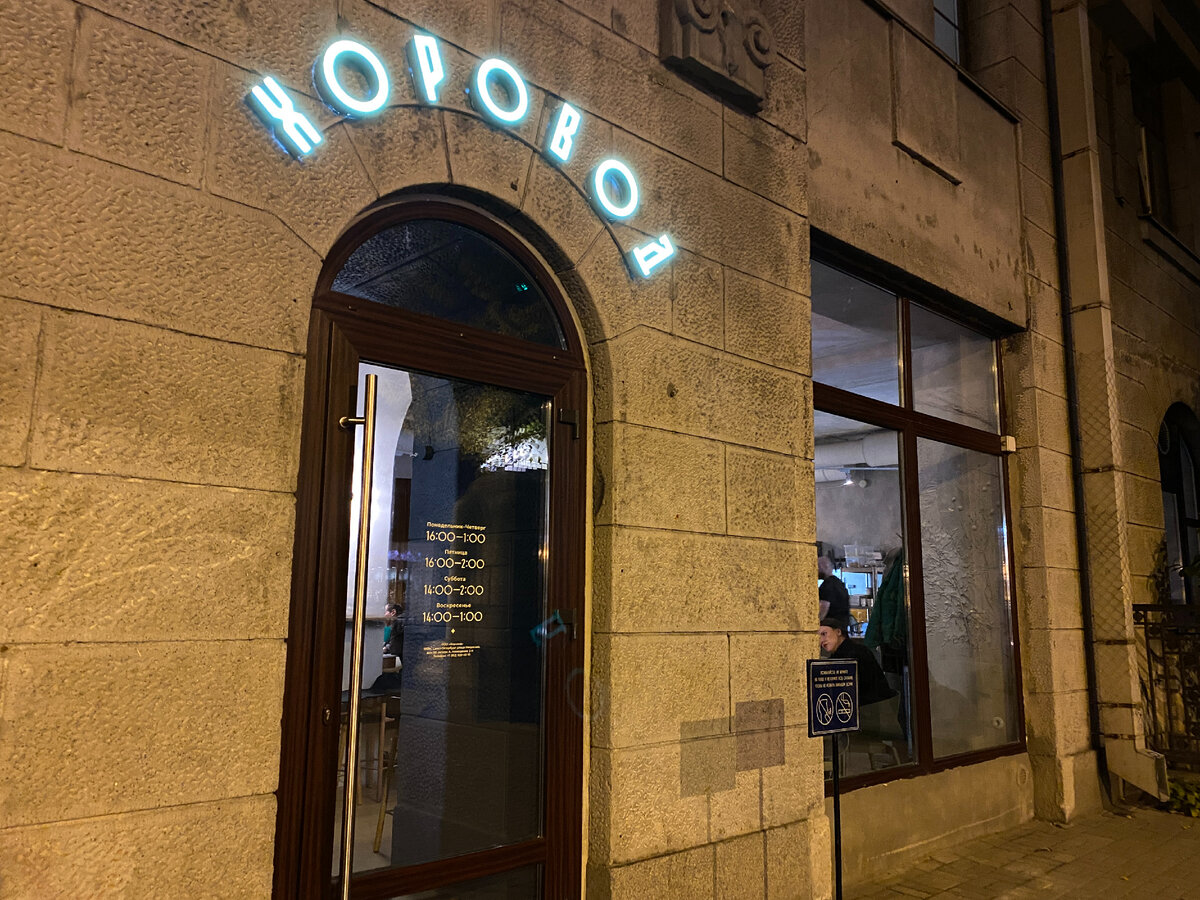 Рюмочную «Хоровод» сделала петербургская пивоварня AF Brew. С ней как-то связан также бар Laboratorio Distilita с очень хорошим подбором дистиллятов. А про саму пивоварню я ещё напишу: был и на ней самой, и в отличном ресторане All Grain при ней. Находится «Хоровод» на улице Некрасова, одной из самых разгульных в городе — с массой недорогих баров и неорюмочных. Но, как сказал мне Саша Тимашков, идеолог «Хоровода», о ней мне рассказавший: «Тут у нас совсем другая Некрасова». То есть без забегов в ширину, вдумчивый уголок; прямо напротив — ресторан Animals, где люди занимаются углублённым изучением продуктов. Интерьер рюмочной крайне аскетичен и нордичен: серые стены в тенях растений, простая мебель. Цены порой тоже не очень-то некрасовские: настойки — по 160 рублей, но то же пиво AF Brew — по 450 р. за поллитра. Зато барная карта в целом очень интересна. Есть хитросплетённые технодистилляты собственного производства: попробовал все три, и они очень ароматны и хороши. (Особенно после, п