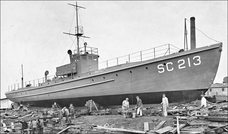 Был разработан охотник за подводными лодками типа SC-1. Но поскольку его производили крупными сериями, а всего настрогали 441 единицу, то конечно, вооружение серий кое-в чём различалось. Слово "настрогали" вполне соответствует истине, поскольку изготовляли их из дерева. Так как крупные верфи строили крупные корабли, то заказы на SC-1 разместили на нескольких мелких.